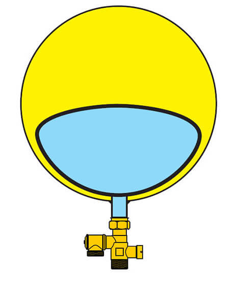 Мембрана кармана служит для поглощения изменения объема воды в системе при нагревании. Предварительное давление в газовом пространстве расширительного бака выталкивает воду из системы обратно в установку по мере ее охлаждения.