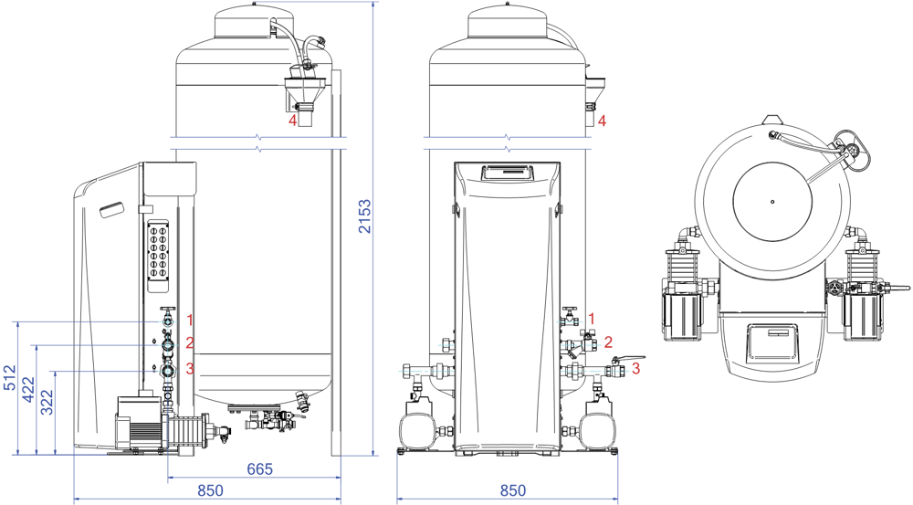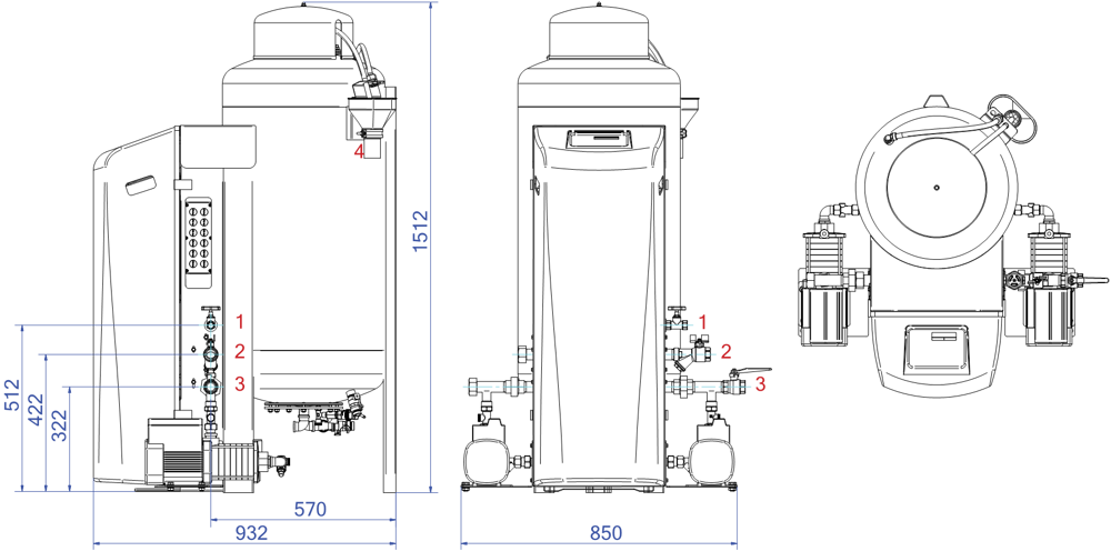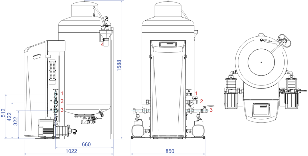 - Поставляется с 6 возможными объемами резервуаров: 45, 75, 125, 200, 300 или 500 литров.