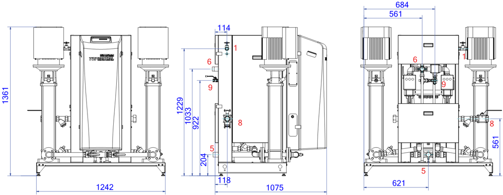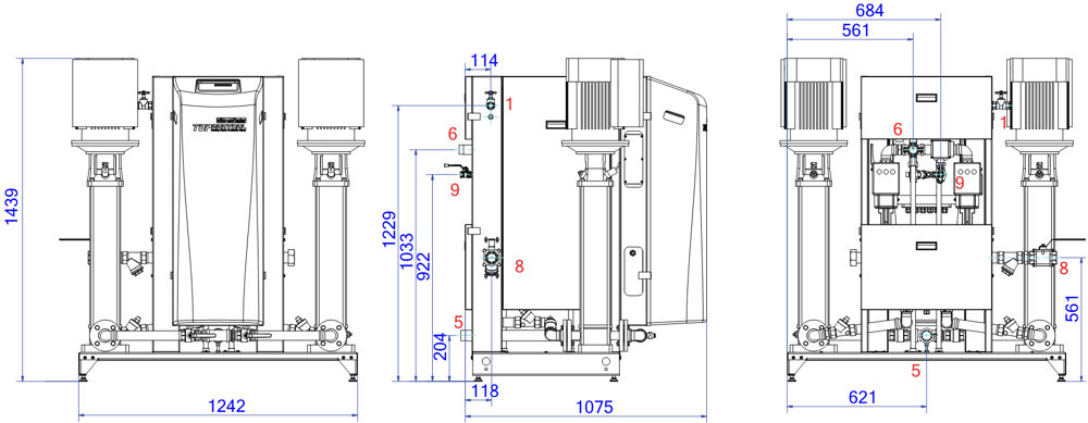 TopControl Modular MAXI Twin — это автоматическое устройство расширения и поддержания давления. Установка содержит 2 насоса с ЧРП (2x 100%) и 2 перепускных клапана с электронным управлением. Требуется отдельный резервуар для хранения EP.